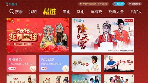 《梨园行》戏曲电视版是专为戏曲爱好者打造的智能电视端应用,致力于让用户在家就能便捷欣赏海量优质戏曲内容。平台汇聚了京剧、豫剧、黄梅戏、越剧等数十个全国性剧种,收录超1万部高清正版戏曲视频,内容源自多家专业剧团与权威戏曲平台,全面覆盖经典名段与当代新作,充分满足不同用户的欣赏偏好。此外,软件还贴心配备了收藏、播放历史等实用功能,方便用户随时重温喜爱的剧目。作为戏曲爱好者的专属选择,《梨园行》让您足不出户就能沉浸于中华传统戏曲的独特魅力之中。