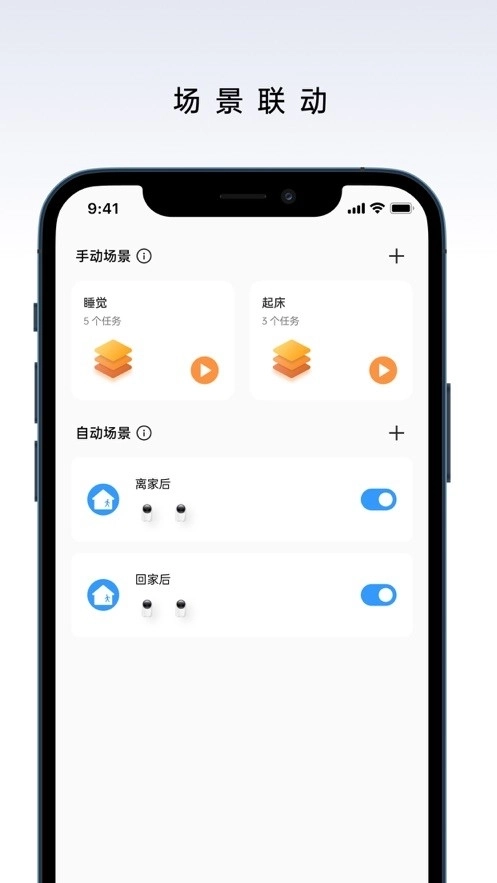 场景联动功能:能按照个人习惯来设置自动化的设备控制场景,使生活体验更为惬意。