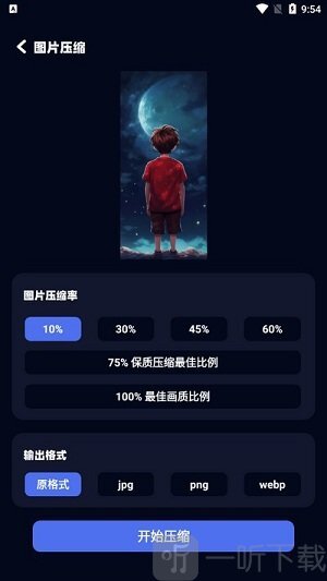 3. 接着挑选压缩率以及需导出的格式,确认无误后点击【开始压缩】按钮就可以了。