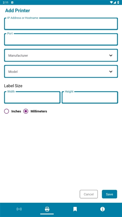 2、录入打印机的IP地址、端口信息、生产厂商、标签尺寸等内容,随后点击保存按钮即可完成操作;