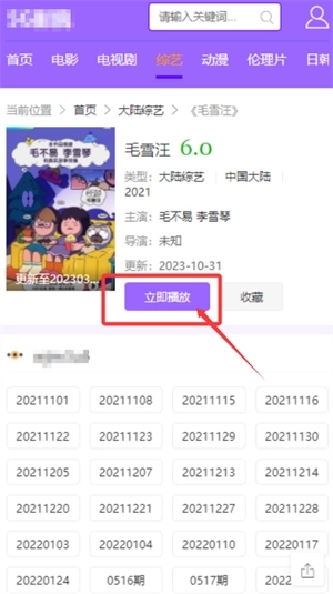 2、在综艺页面找到你想看的节目,点击立即播放按钮就可以在线观看了。