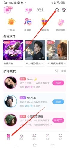 进入后,先点击左下方的“首页”,接着点击右上方的“放大镜”按钮。