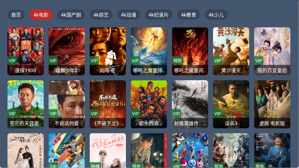 进入首页顶部栏里集合了丰富多样的影视资源类别,像电影、国产剧和动漫类等都包含在内。
