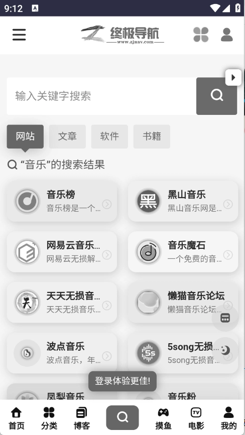 终极导航,集小说、音乐、影视等多类资源搜索于一体,所有内容均免费提供。简洁纯净的搜索界面,为用户带来便捷流畅的搜索体验;同时,系统会依据用户的喜好,智能精准地推荐同类型资源,用户所需的各类内容都能在此轻松找到。