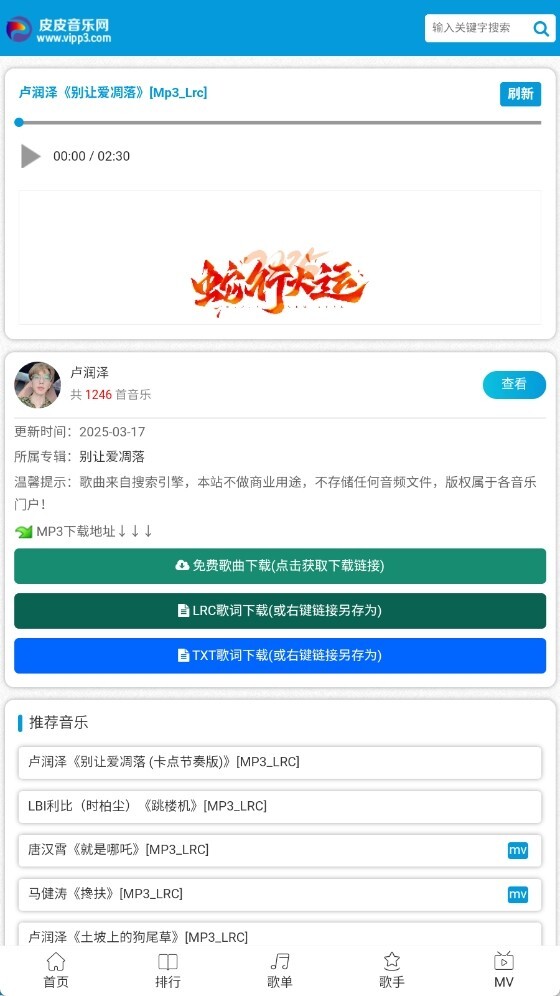 2、用简单的方式开启音乐搜索,通过关键词检索就能收听喜爱的音乐歌曲