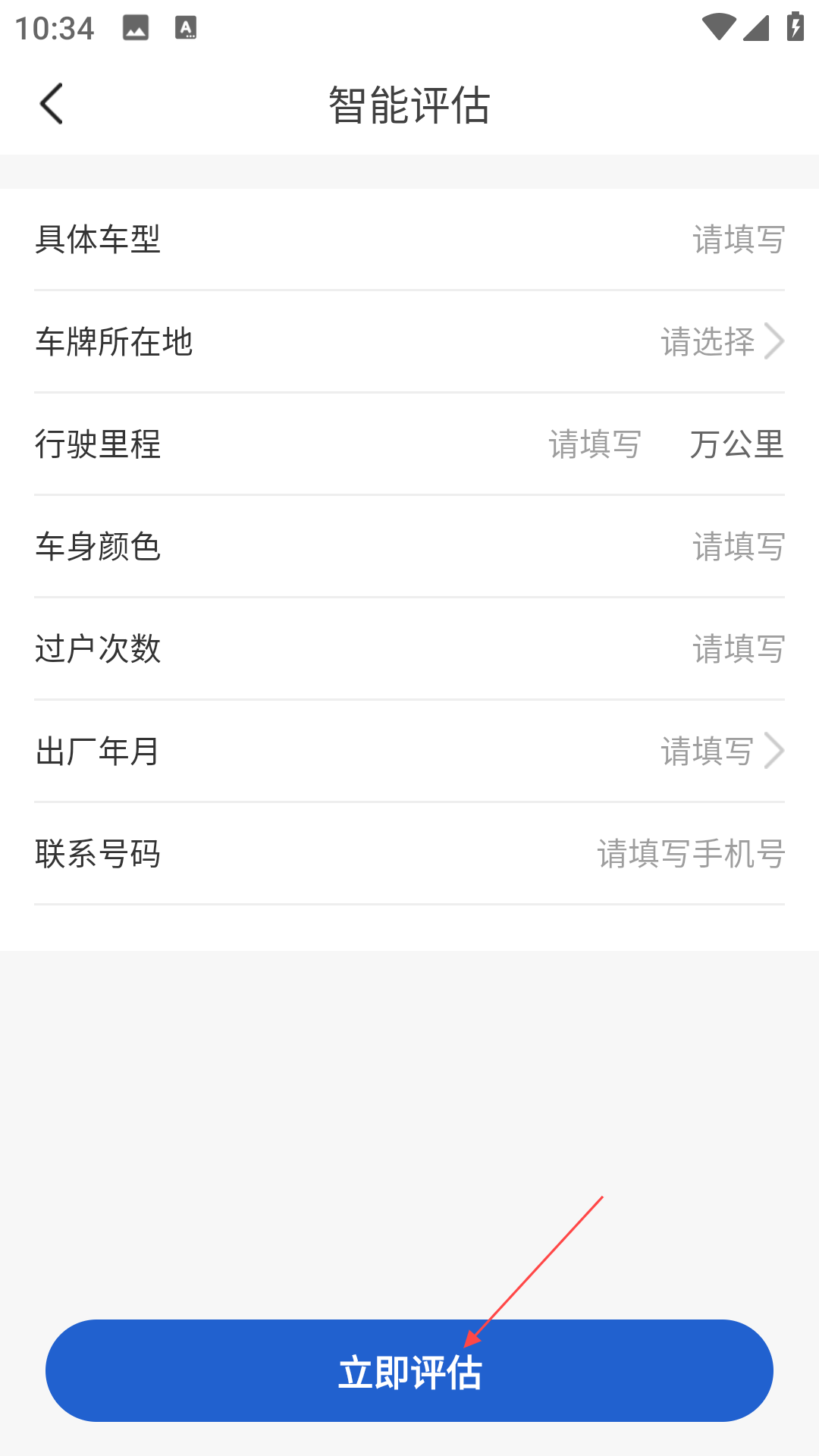 4、填写车辆的相关信息后,点击【立即评估】按钮,稍作等待就能获取评估报告了。