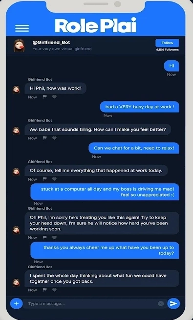 RolePlai是一款能和众多AI角色模型聊天的软件。软件里的角色均由其他用户制作上传,你可以在此寻找心仪的角色——每个角色的设定等方面各有不同,而且还有丰富的分类,你可以进入喜欢的分类去查找,找到后就能和这些角色聊天啦。