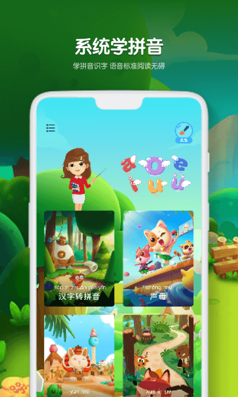 这款儿童拼音助手与一年级拼音教学同步,将拼音学习划分为不同模块,通过趣味动画引导幼儿学习拼音,帮助宝宝轻松掌握拼音知识并爱上拼音学习,让家长更省心。