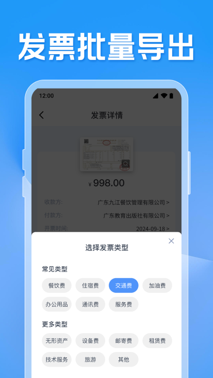 3、可适配餐饮费、交通费、住宿费等多种常见发票类型,能够满足不同场景下的发票管理需求。