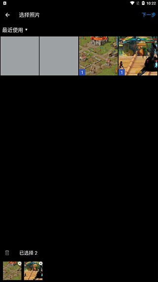 4、当然最重要的就是这个拼图,选择两个照片,点击下一步