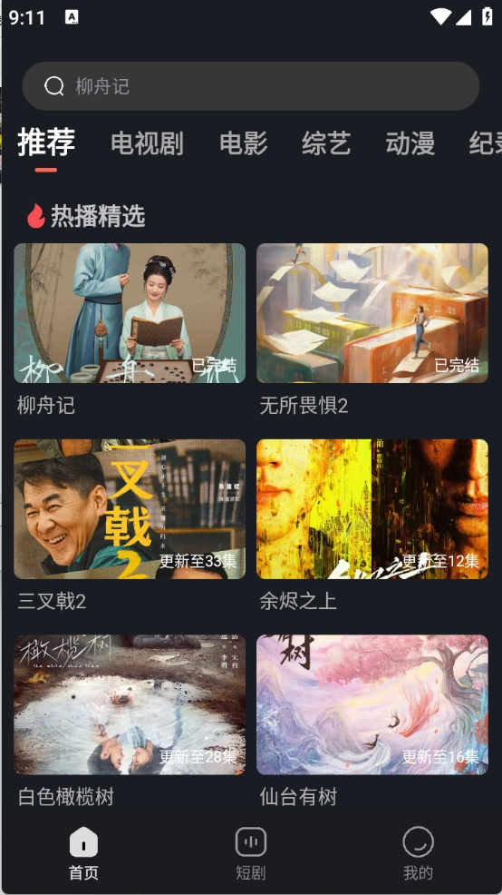 进入首页后,顶部栏陈列着丰富的影视剧集,涵盖电视剧、电影和综艺等多种类型。