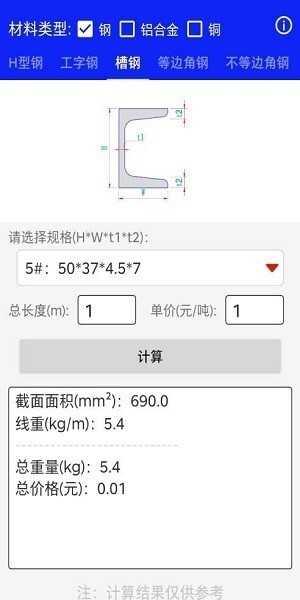 2.可计算不同形状的钢材重量