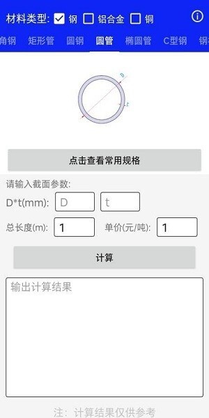 钢材线重计算是一款整合了钢管、三通、弯头、异径管、管材、板材及各类型材的便携计算工具,丰富专业公式,无需手动计算,只需在软件中输入钢材相关数据即可套用公式得出结果,操作简便且计算精准,能有效提升工作效率,方便现场即时办公。