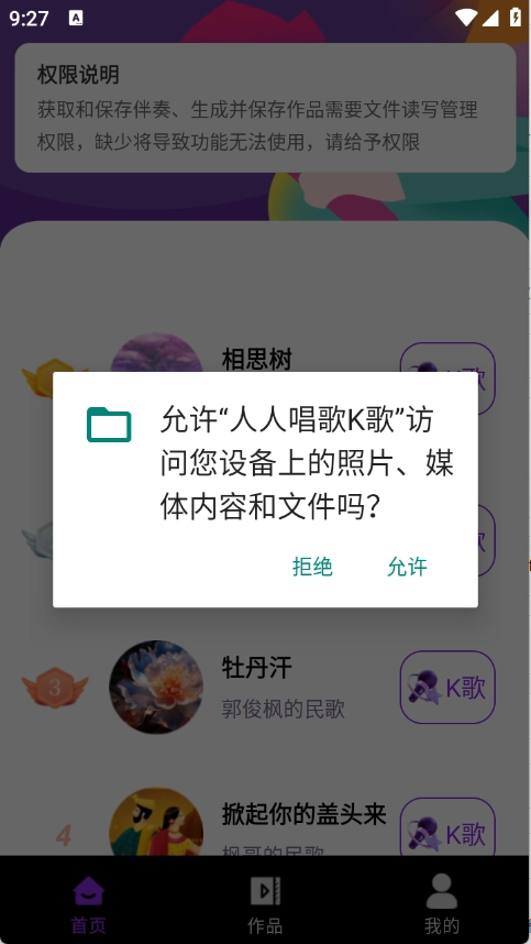 接着点击“k歌”,开启相关的权限。