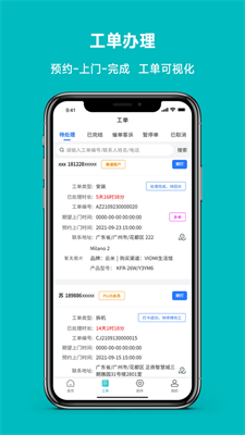 1.在工单处理流程里,该软件为用户配备了在线预约、上门维修与订单完成这一系列流程,且所有操作环节均以可视化形式呈现,便于用户开展操作与管理工作。