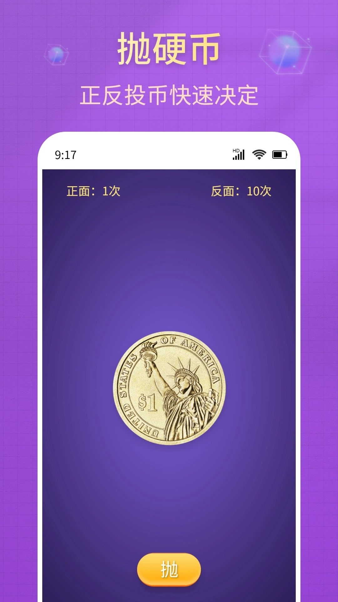 3.抛硬币功能:无需实体硬币,即可便捷实现抛硬币操作。
