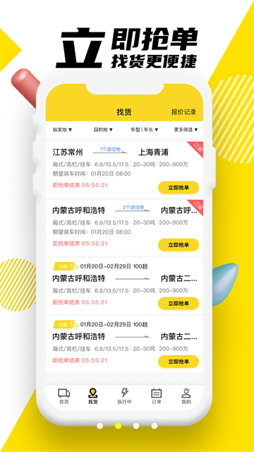 1、【立即抢单】找货更便捷