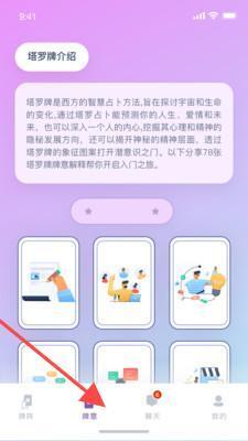 1.提供详尽的塔罗牌解读以及牌阵搭配方法,助力用户更深入地领会塔罗牌的内在含义。