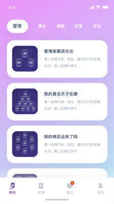 【塔罗咨询】塔罗牌起源于15世纪的意大利,作为一种古老的占卜工具,本应用经由多位塔罗名师研发科学测算公式,为用户提供168种神秘牌阵。这是一款专注于塔罗测算的应用,收录了各类流行且实用的塔罗阵法,致力于为大家打造全面、专业又有趣的塔罗体验。依托22张大阿尔克纳牌、56张小阿尔克纳牌及正逆位解读机制,以168种牌阵为核心,助力解决爱情、学习、事业、财运、健康与运程方面的困扰。