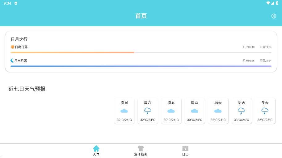 安装完成后进入应用,系统会自动定位,让你及时了解本地的温度、空气湿度等气象信息。