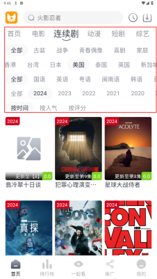 3.点击连续剧版块,可以本剧标签进行分类筛选