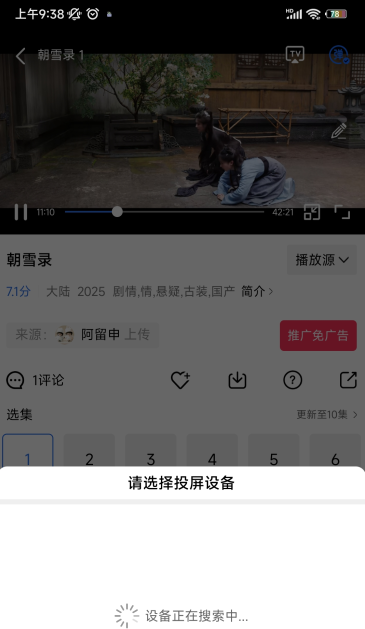 3、接着选择对应的投屏设备就可以了,需要注意的是,手机和要投屏的电视一定要连接在同一个WiFi网络中,不然系统会显示“暂无设备”的提示。