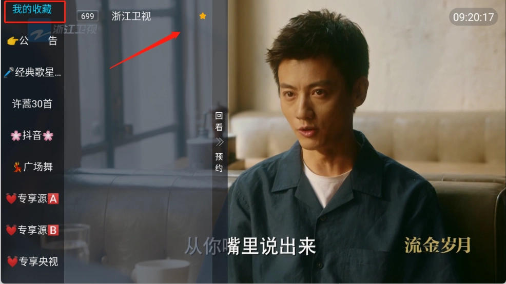 可以点击左上角“我的收藏”,查看收藏的频道。