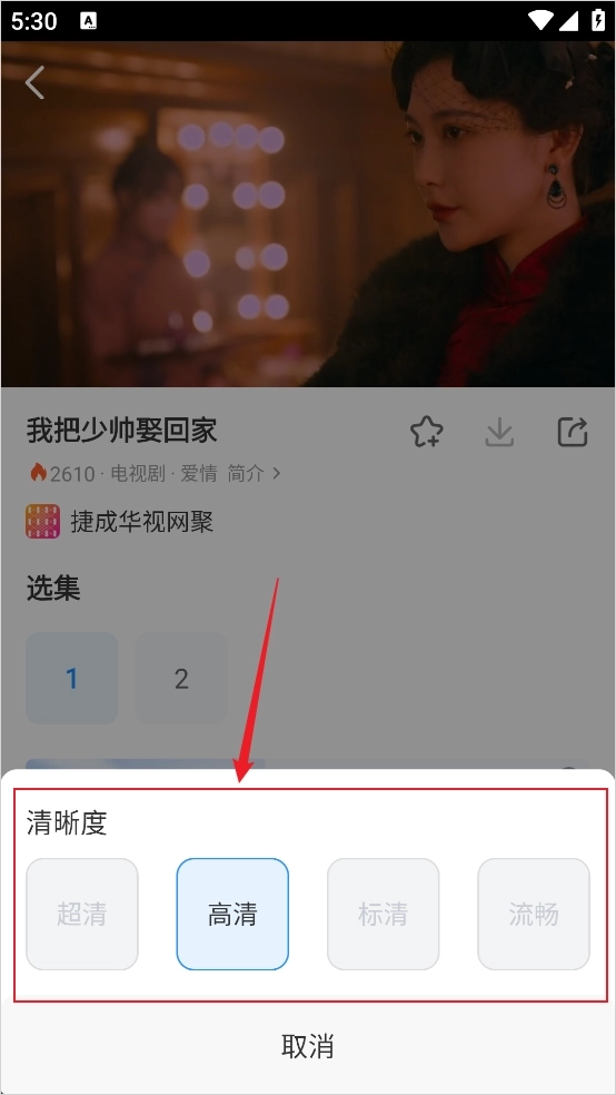 3、出现弹窗后选择清晰度