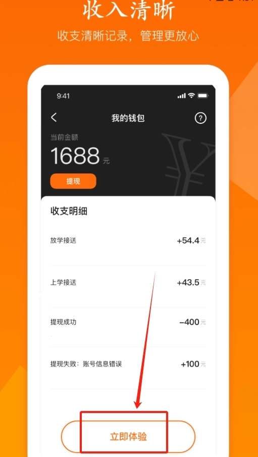 3、接送任务执行操作:依照订单所指定的时间与路线,完成学生的接送工作;在确认任务完成后,即可获得对应的接单收入。