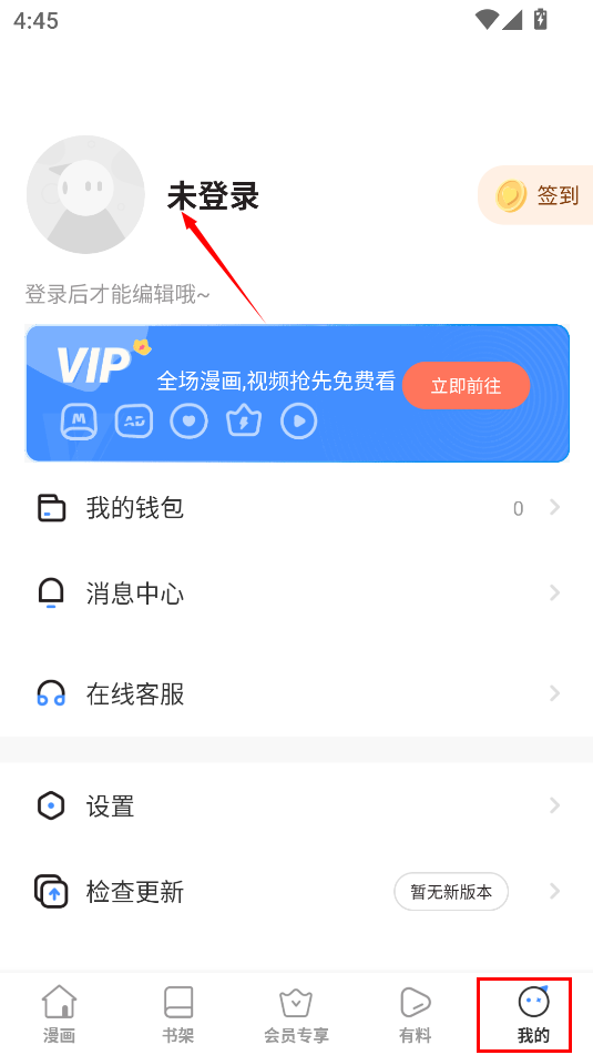 2、随后在软件里切换至“我的”页面,再点击页面上方的头像
