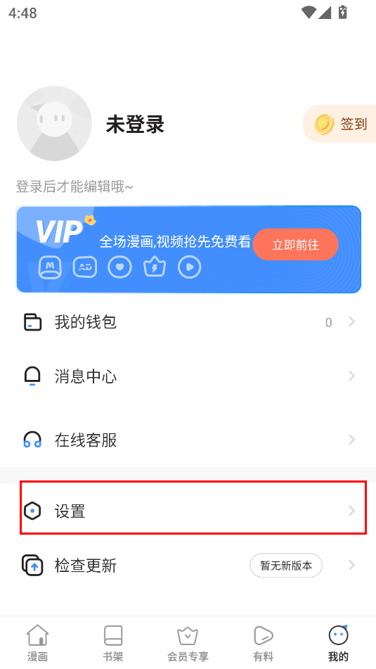 2、进入打开的设置界面后,开启“漫画章节自动购买”功能就可以了