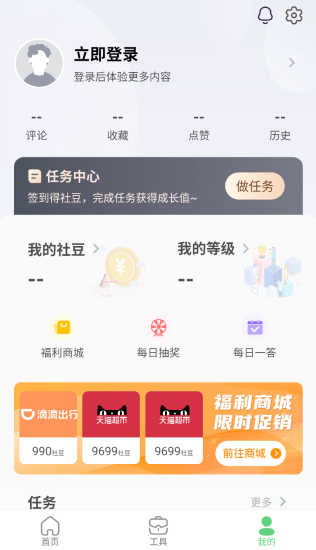 1、打开社百网,在主界面底部找到并点击“我的”选项,进入到个人专属页面。