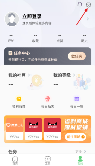 2、进入个人页面后,注意查看页面上方的区域,找到“设置”选项并点击进入设置界面。