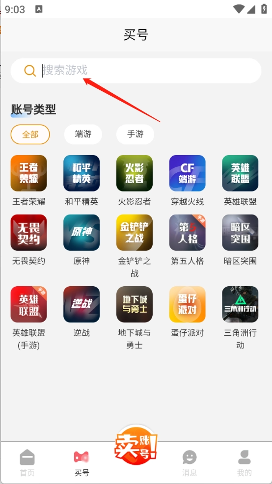 进入首页后,这里汇集了大量游戏账号,涵盖王者荣耀、蛋仔派对、和平精英等热门游戏。