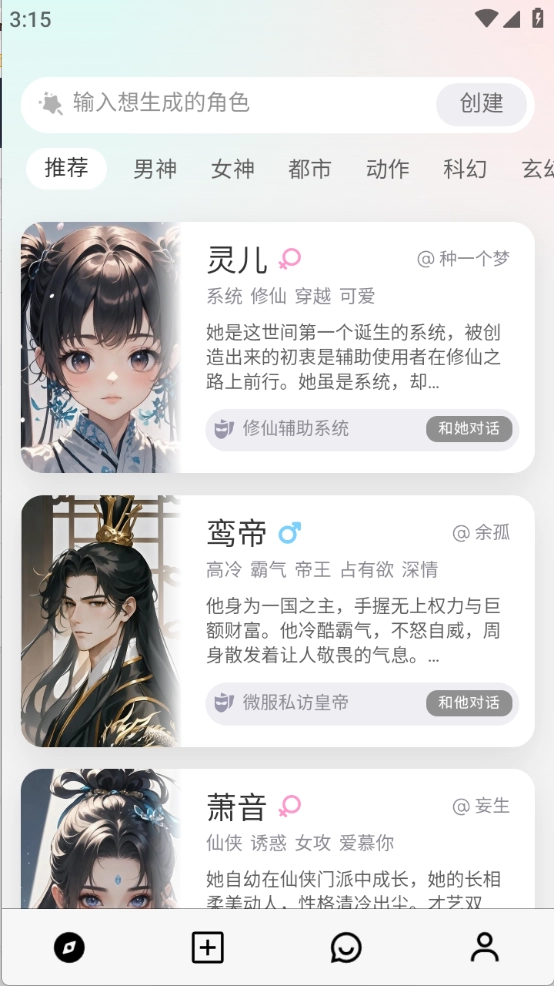 这里有丰富多样的AI角色可供挑选,你可以自由创建专属人设,开启轻松随心的聊天体验。