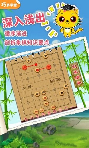 5、教学内容通过人物互动的形式展开,将生活化的对话与动画表达相结合,风格亲切自然,让原本抽象枯燥的象棋知识如春雨润物般,在孩子毫无察觉中被轻松接受和理解。