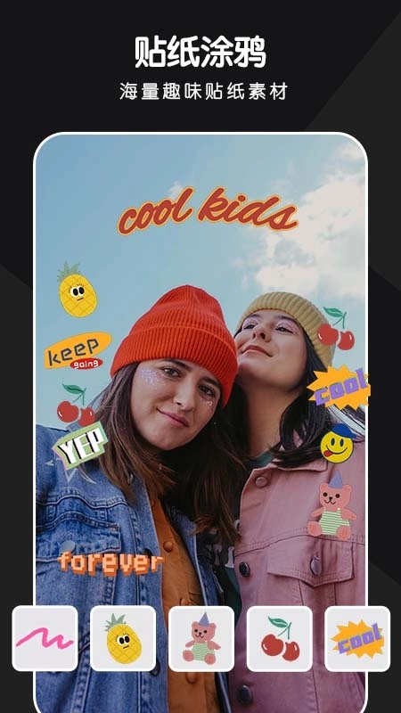 2、提供文字添加、水印设置、贴纸装饰、涂鸦绘制等功能,丰富创意表达的形式,提升创作的灵活度。