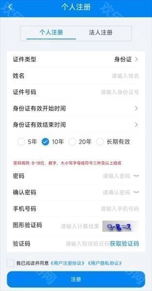 3、个人身份注册,就只需也填写身份证的信息,比较的简单。