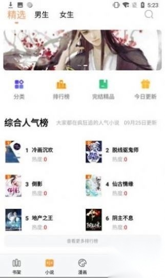 3、【排行榜单】男生榜、女生榜、完结帮、热搜榜、推荐榜、精选榜。