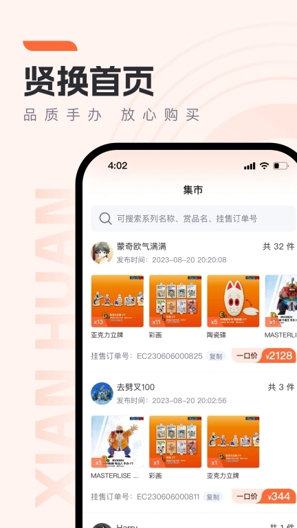 贤换作为一款专注于手办交易的专业应用,为用户提供安全且便捷的在线交易服务。在这里,用户不仅能够浏览、选购及售卖各类手办,还能体验到优质的使用感受与专业的交易安全保障。