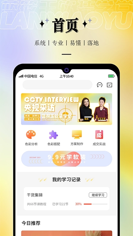1、线上课程:每天仅需10分钟,就能从零基础起步学习色彩搭配,循序渐进地提升设计能力。