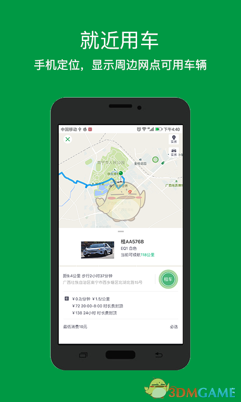 【步行5分钟即可取车】遍布各处的数百个取车网点,打开应用,就能就近下单;