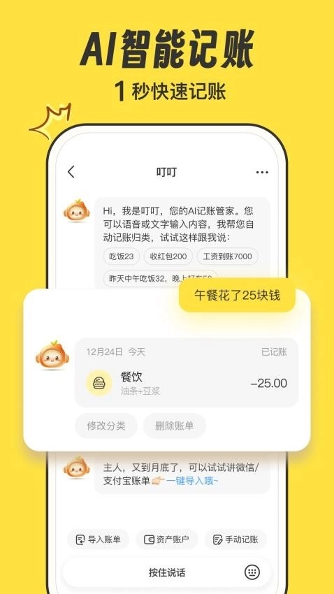 2、当用户使用语音记账功能时,软件会自动生成账单并进行智能归类,让查账变得更便捷。
