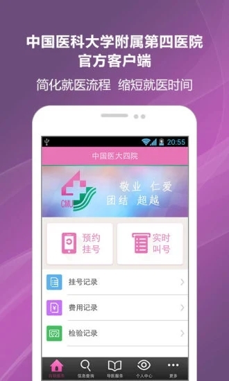 【预约挂号】本院所有科室的普通门诊与专家门诊均支持手机预约,患者仅需一部手机,就能完成挂号预约流程; 【信息查询】患者通过客户端可便捷查看检验报告单,无需往返医院,省去了不必要的奔波。
