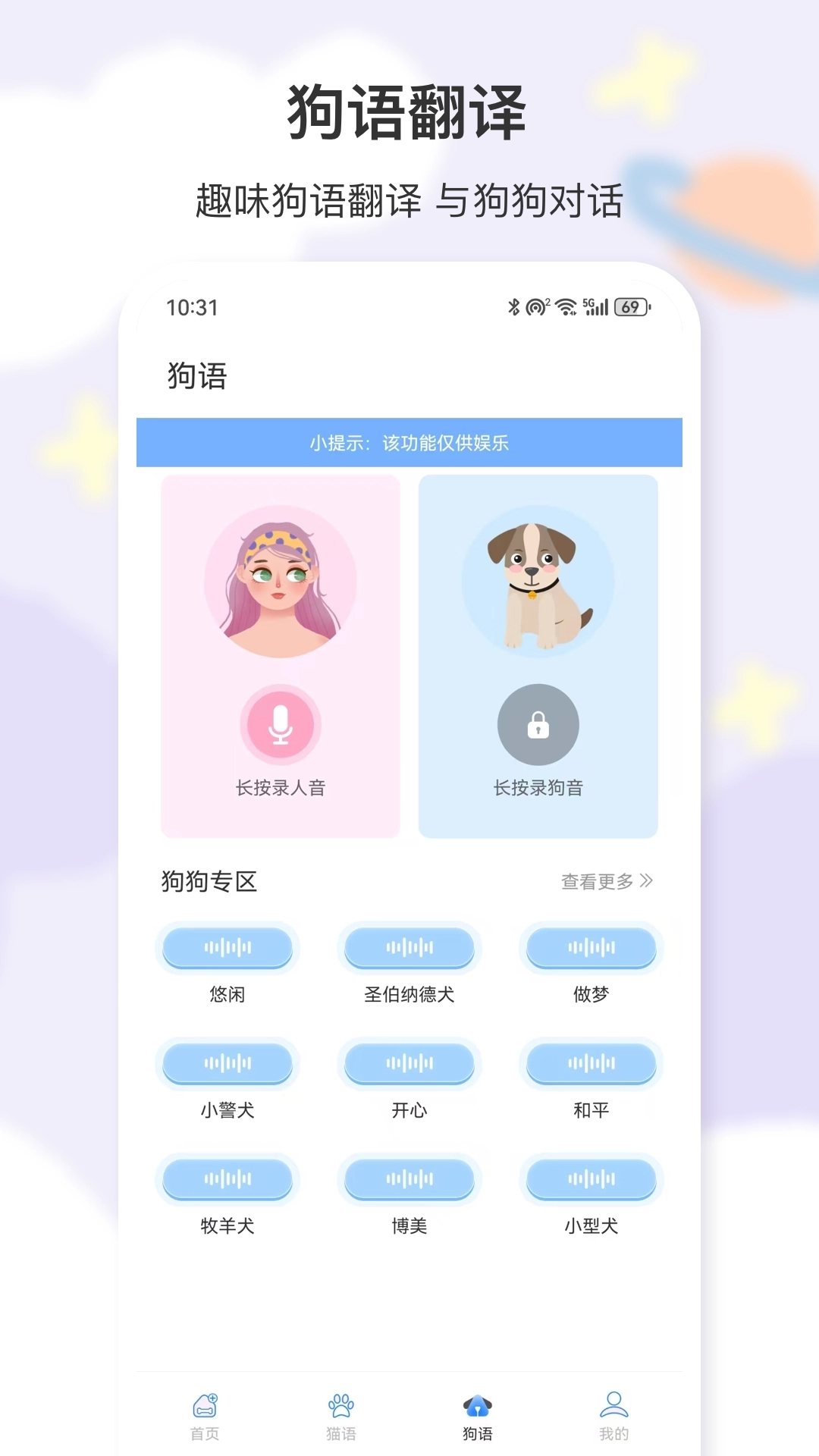 2、个性化设置功能,支持用户依据自家宠物的独特特点进行针对性调整,使翻译结果能够更精准地契合宠物的生活习惯与行为模式。