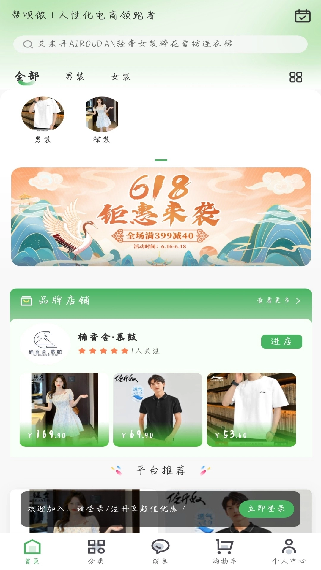 帮呗侬是一款汇聚品牌好物的高性价比购物软件,男装女装随心挑选,手机数码、电器、家居好物等各类商品一应俱全。平台商品分类细致,用户能通过分类筛选正品,同时还有品牌店铺及平台推荐的正品可供选择,支持搜索功能查找心仪好物,更有丰富优惠活动,核心宗旨是让用户省钱买到优质精品。