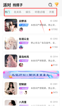 用户能够进入各类聊天室,和多人开展实时语音对话,交流想法,认识新伙伴。