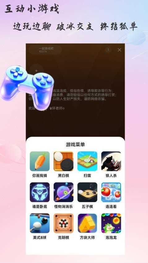 【趣味互动】「你画我猜」「对战消消乐」「狼人杀」「谁是卧底」等丰富游戏选择,帮你轻松和好友打破隔阂、拉近距离,告别孤单时刻!