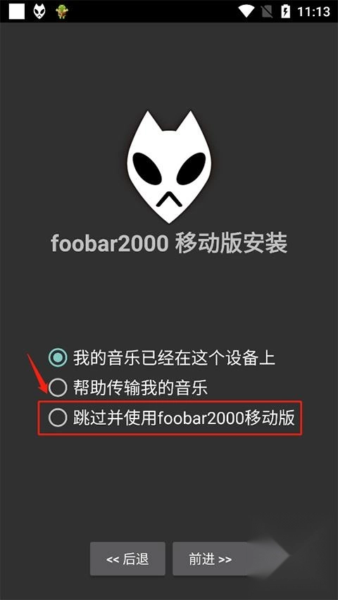 这里你可以选择“跳过并使用foobar2000移动版”。