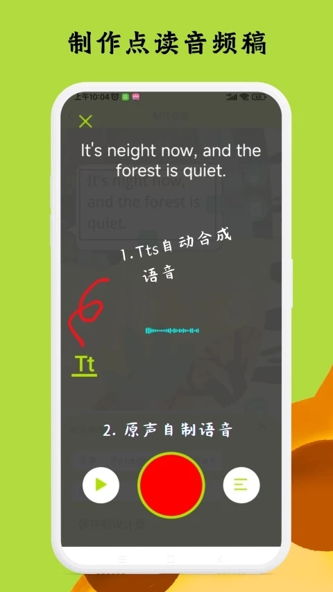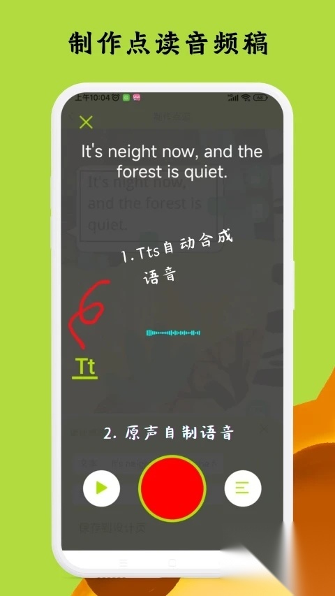 3、制作点读音频稿时,需先通过Tts自动合成语音,再进行原声自制语音的录制。